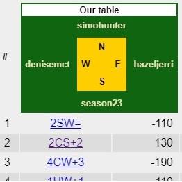 After a recent experience of being surprised how a passed in hand was scored, I thought I would share it with you. I naively had the idea that more or less the two pairs would get the same (middling) score but that is not quite how it works.